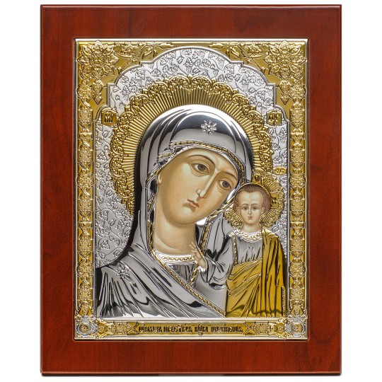 Ikona prostokątna na brązowej desce z wgłębieniem tzw. kowczegiem (kolorowa)